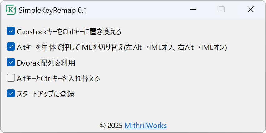 Windows環境でUS配列キーボードを便利に使うためのツール。左右AltキーでIME切り替えなど、Mac風のキー配列を簡単に実現。